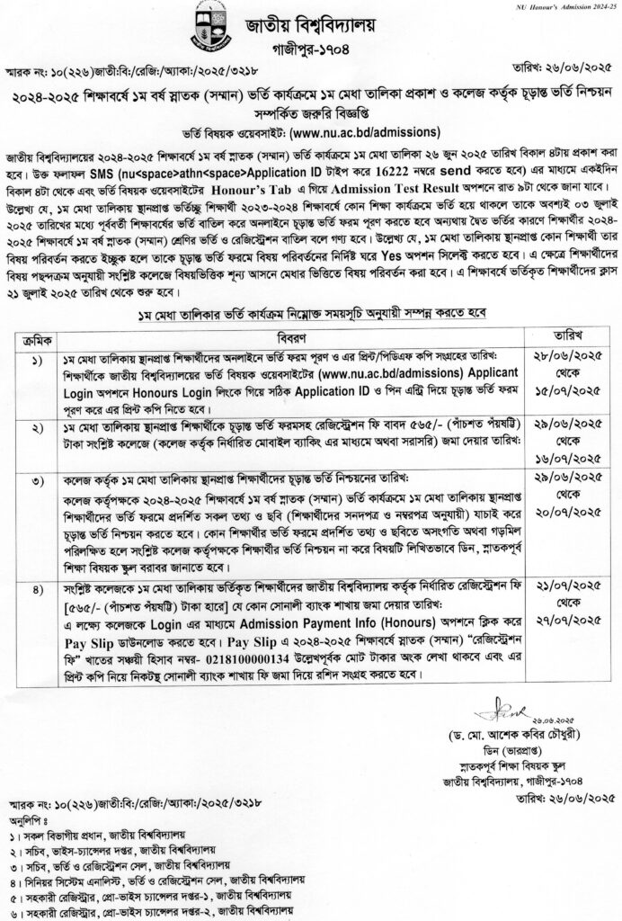 ২০২৪-২৫ শিক্ষাবর্ষের ১ম বর্ষ স্নাতক (সম্মান) শ্রেণীতে ভর্তি বিজ্ঞপ্তি